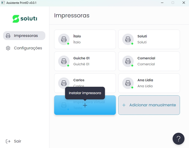 Para vincular a estação de trabalho ao usuário, é necessário passar o mouse por cima do ícone da estação em que será vinculada e clicar em “Instalar impressora”.